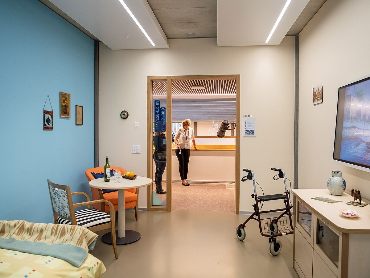Die Studierenden können in drei «Skills-Räumen» realitätsnahe Situationen exemplarisch trainieren. Die Zimmer sind auf die drei Versorgungsbereiche Alters- und Pflegezentrum, Spital sowie Spitex ausgerichtet. Zudem sind die Räume mit Kameras, Mikrofonen und Lautsprechern ausgestattet. Übungssituationen können so entweder aufgezeichnet oder direkt live in die Unterrichtsräume übertragen werden. Die Skills-Räume sind Teil der praxisnahen Ausbildung Die Studierenden erlangen so Sicherheit für ihr Handeln in realen Patientensituationen.