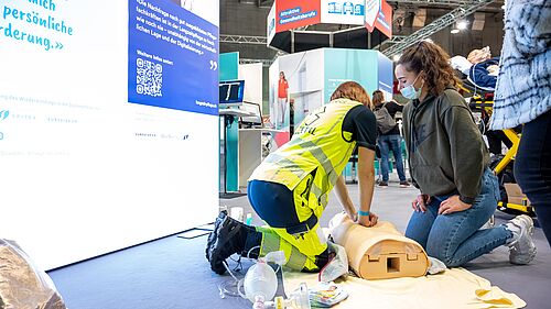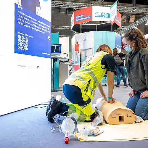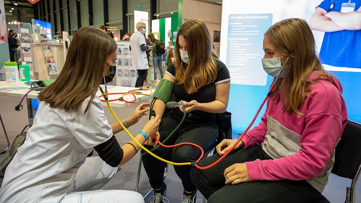 Wer noch vertieftere Einblicke gewinnen wollte, konnte dies direkt am Stand gegenüber tun. Dort fand die Zentralschweizer Berufsmeisterschaft der Fachfrauen/Fachmänner Gesundheit EFZ statt. Die Meisterschaft gewonnen hat Gianna Pellizzaro vom Luzerner Kantonsspital. Vizemeisterin ist Simona Ciancio von der Spitex Stadt Luzern und den dritten Rang erreichte Lea Zimmermann von der Hirslanden AndreasKlinik.