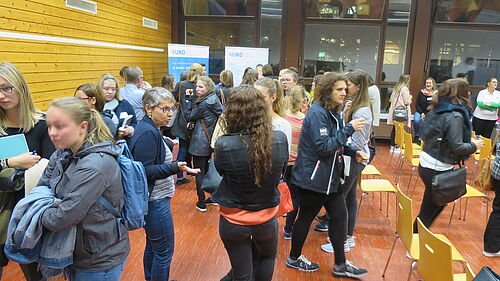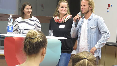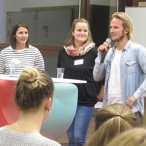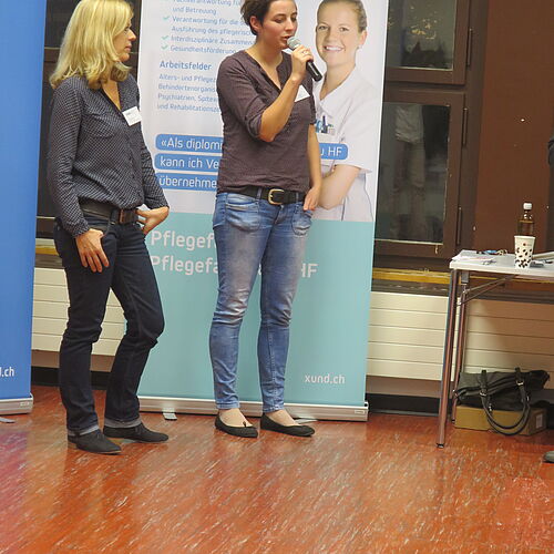 Nebst Details zur Ausbildung durch das Bildungszentrum XUND und dem BBZG Olten, wurden im ersten Teil der Veranstaltung die Ausbildungsorte sowie der Beruf an sich kurz vorgestellt. Erstmals präsentierte Andreas Mayer, Leitung Entwicklung Pflege von XUND, die neue Ausbildung Pflege HF. Ab Herbst 2018 gibt es jährlich neu 4 Ausbildungsstarts. Die arbeits-, phasen- und bildungsgangübergreifenden Lerngruppen unterstützen das Ziel, nahe an der beruflichen Realität auszubilden. Fachfrauen/Fachmänner Gesundheit EFZ haben die Möglichkeit, die 2-jährige Ausbildung zu machen, während alle anderen die Ausbildung in 3 Jahren absolvieren. Das Abschlussjahr ist für alle identisch. Alle Studierenden schliessen mit den gleichen Kompetenzen ab. Der anschliessende Talk mit Studierenden gab interessante und amüsante Einblicke in ihren Berufsalltag.